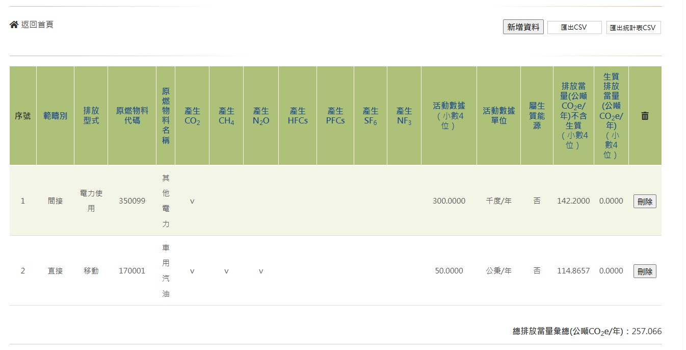確認完畢後,點選「新增」即可添加第二筆盤查數據。