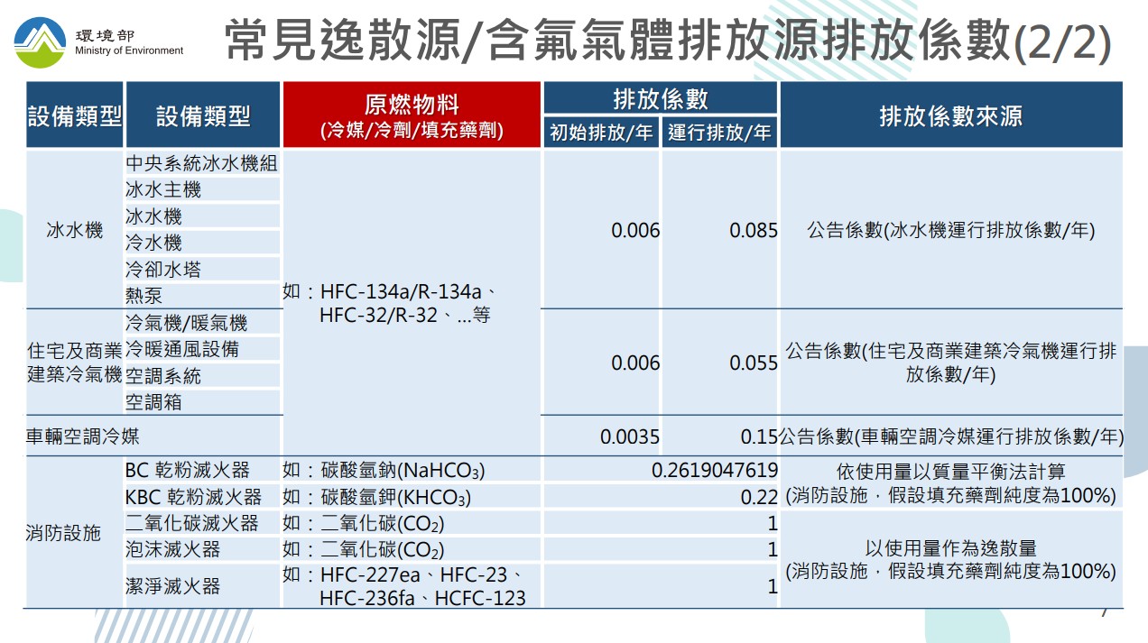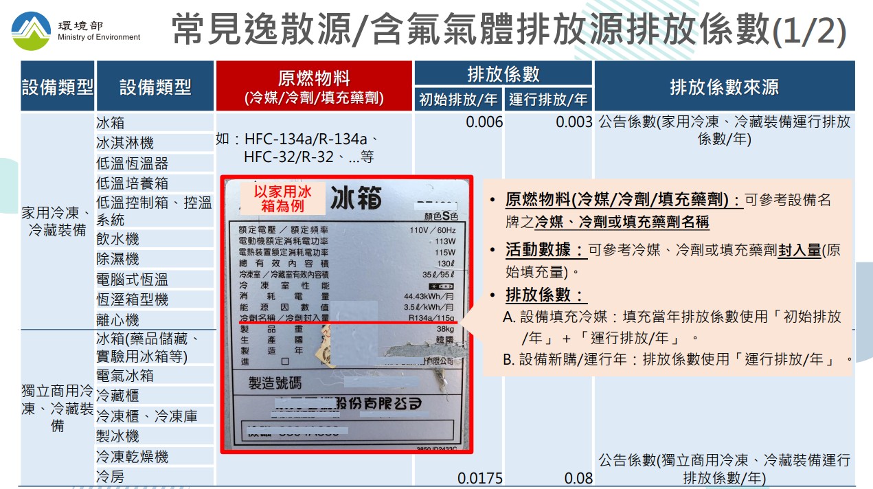 由於冷媒的操作難度相較電費單、油單、瓦斯帳單來的稍微難一些(但也是填類型+填充量就好不難),這邊稍微引用環境部資料給大家參考